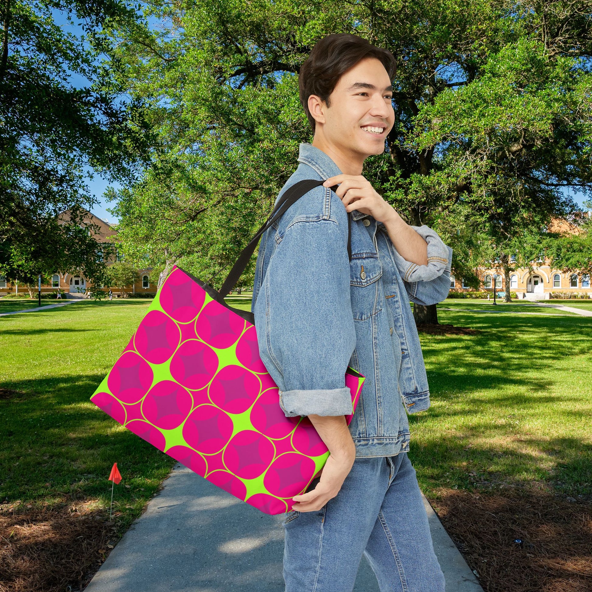 Retro-inspired and unmistakably modern, the Geometric Art XX XL Tote delivers a punch of color and personality with every carry. Featuring a vivid pattern of layered shapes in hues of Pinks and Greens, this oversized tote is built for big style and bigger days.