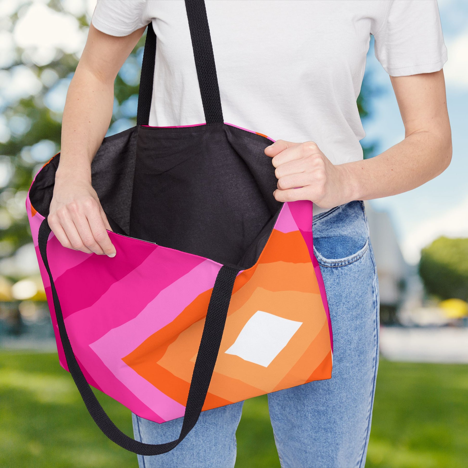 Retro-inspired and unmistakably modern, the Geometric Art XL Tote delivers a bold pop of personality with every carry. Each of our oversized totes is made to turn heads—and haul it all. Whether you're off to the beach, loading up at the market, or packing for a creative escape, this statement piece is ready for whatever the day brings.