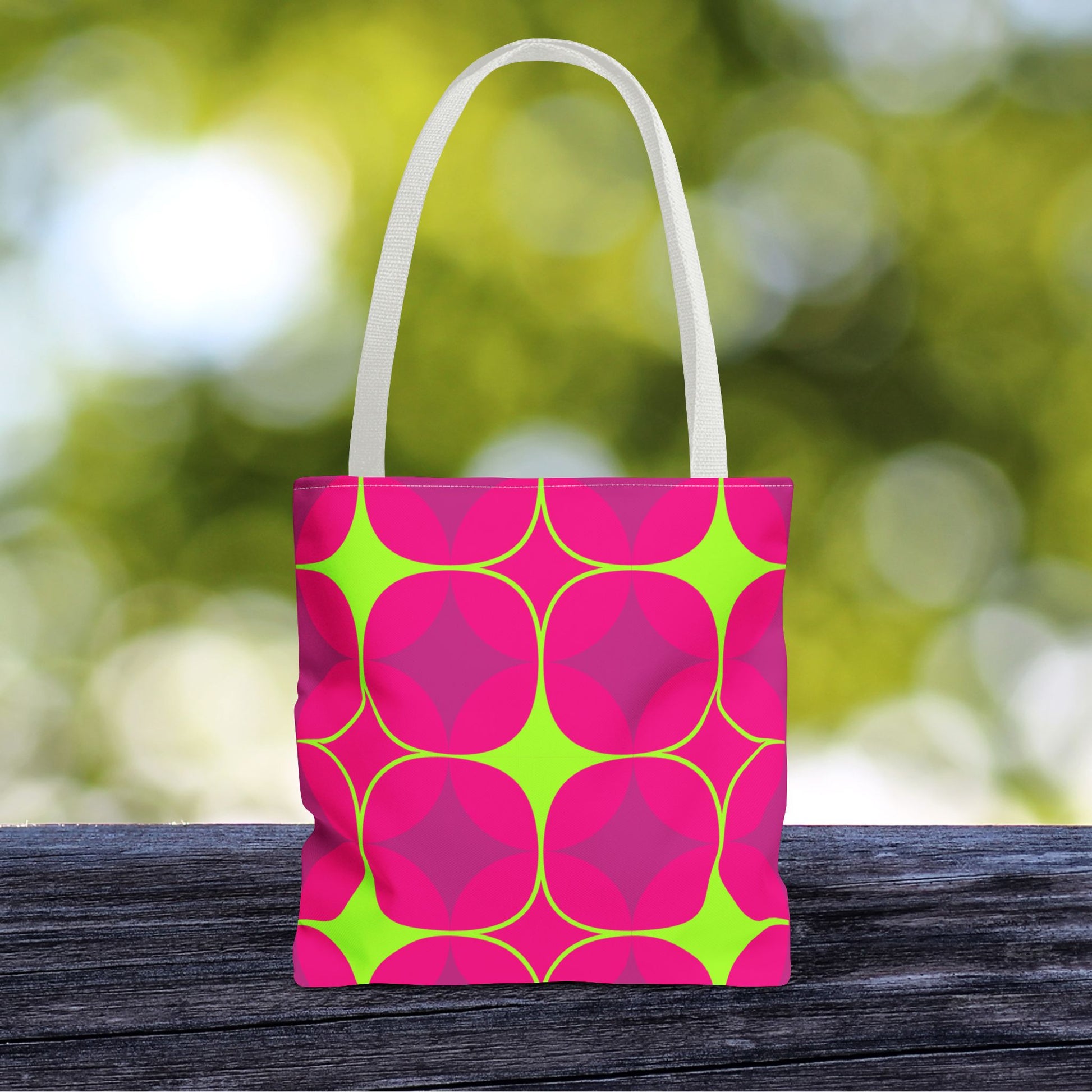 Geometric Art Tote Bag – 3 sizes | Bold lines. Vivid color. Retro with a modern twist.