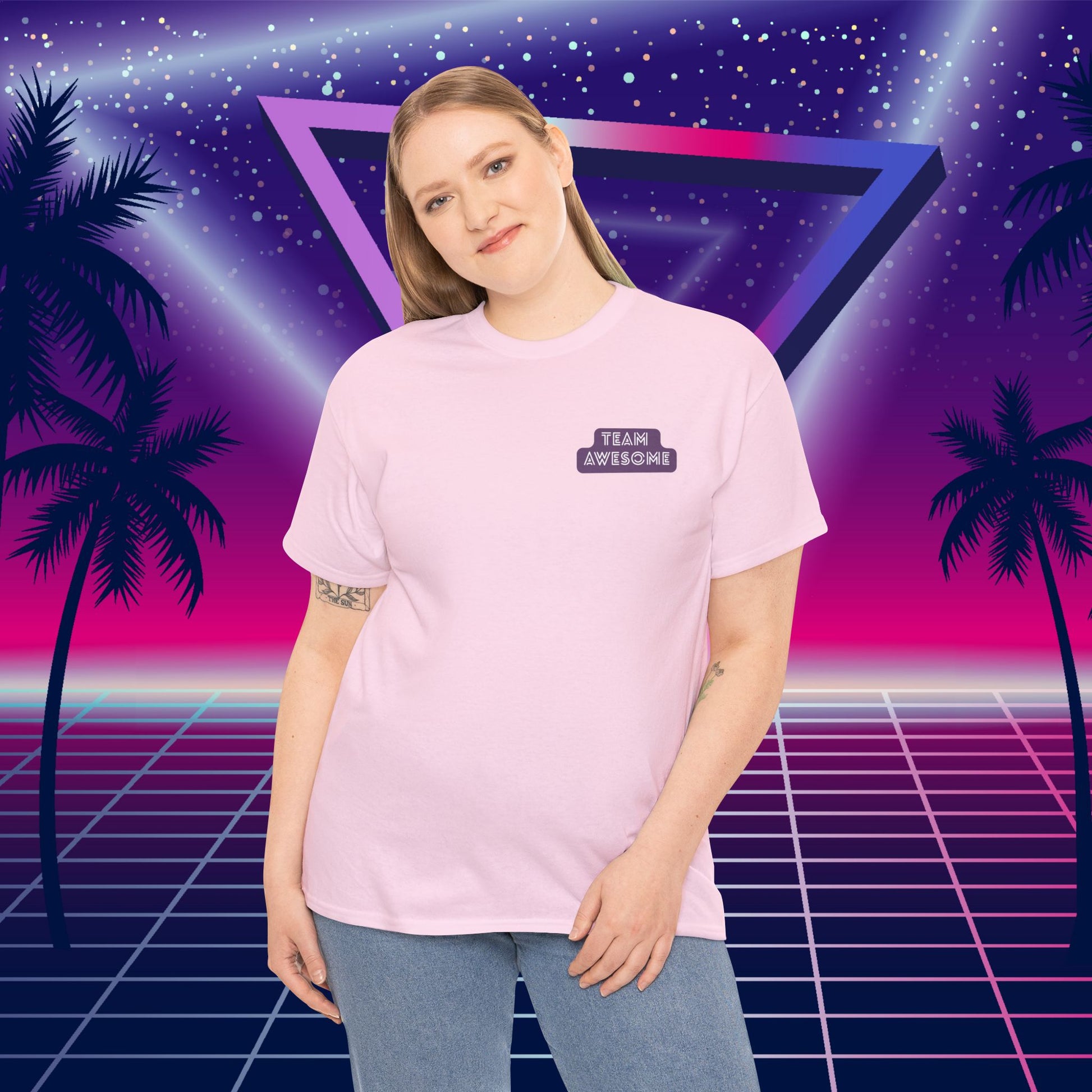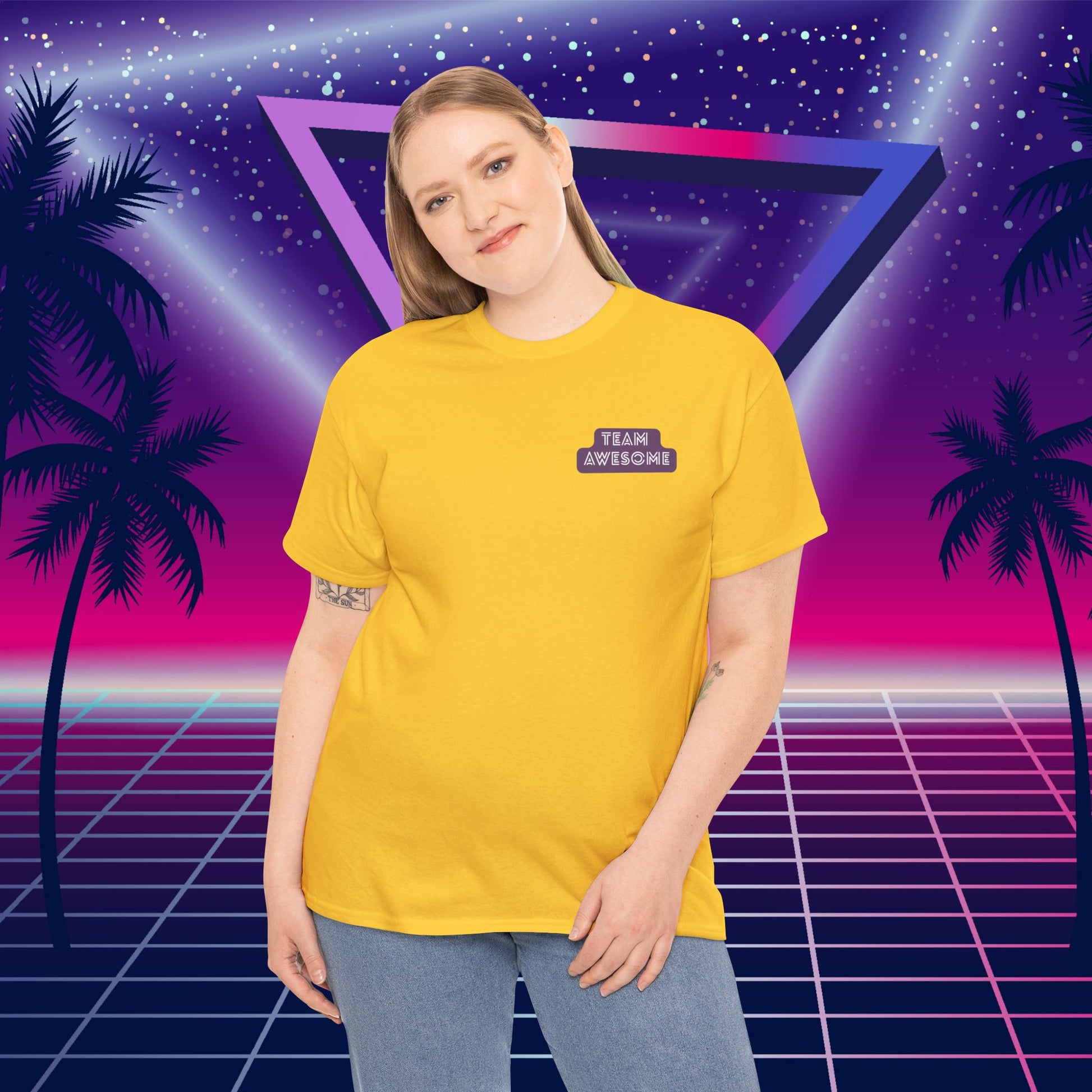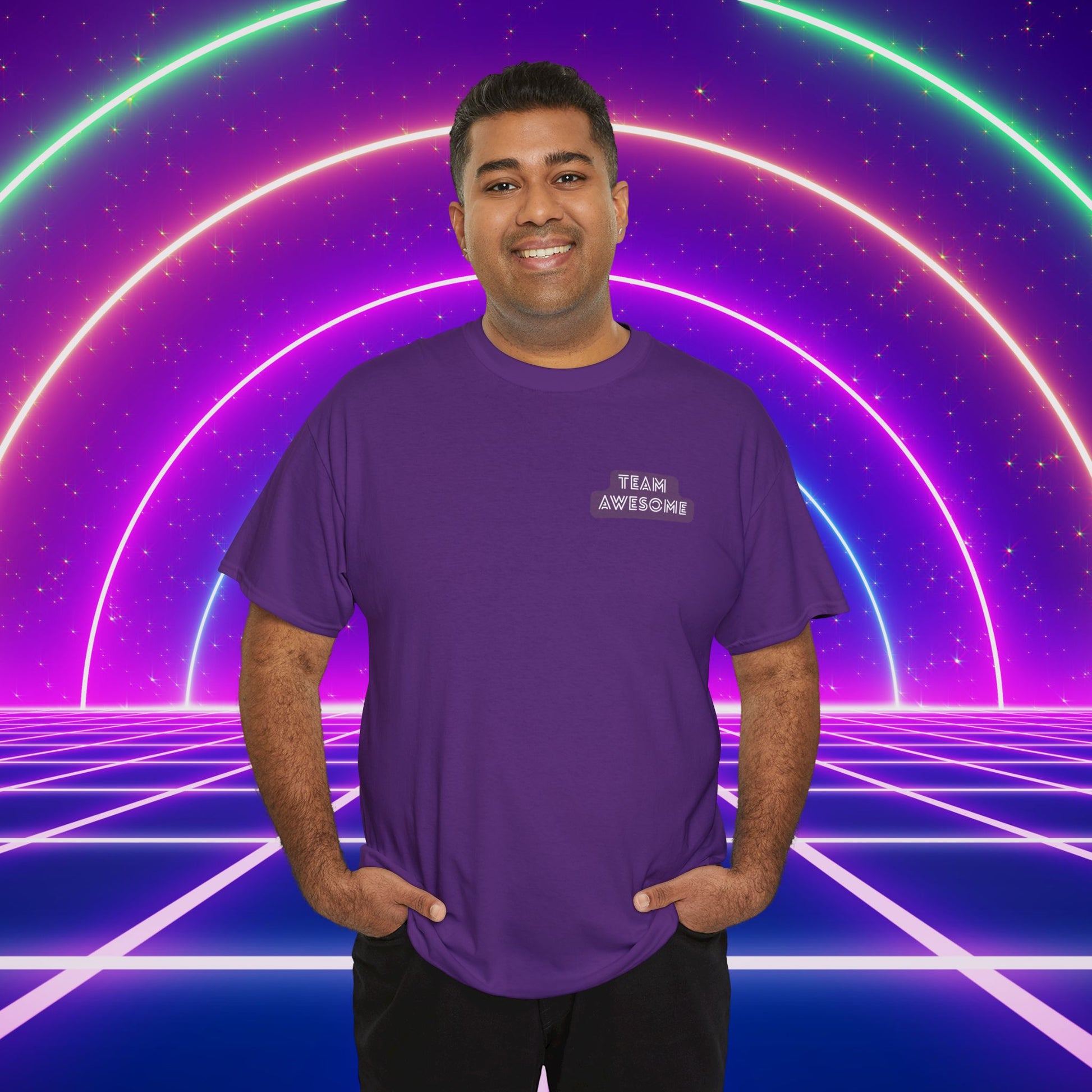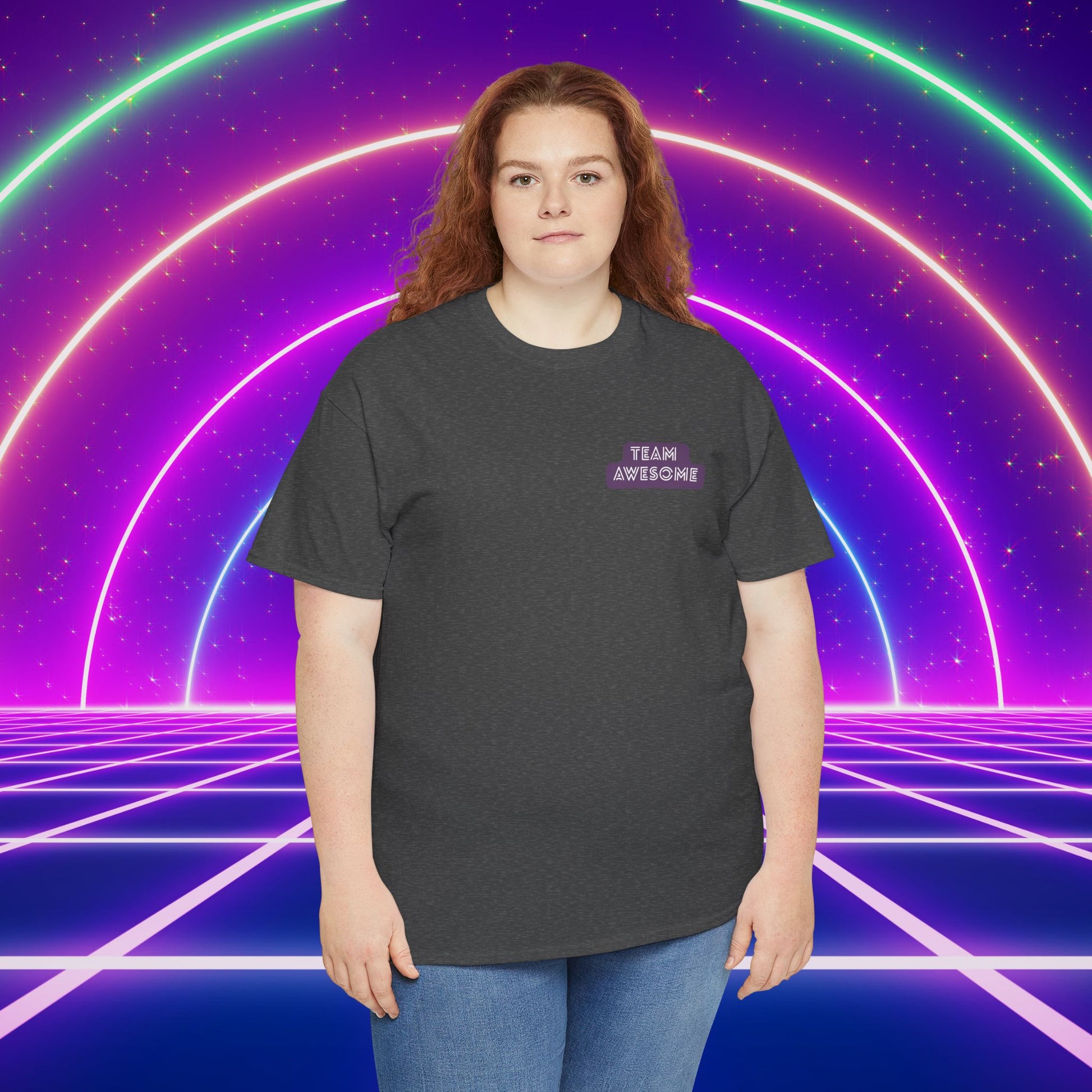 Front: Clean tee with "Team Awesome" printed badge