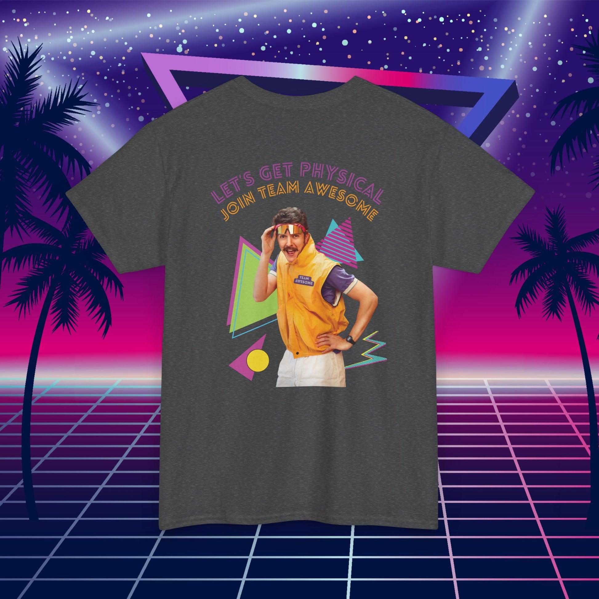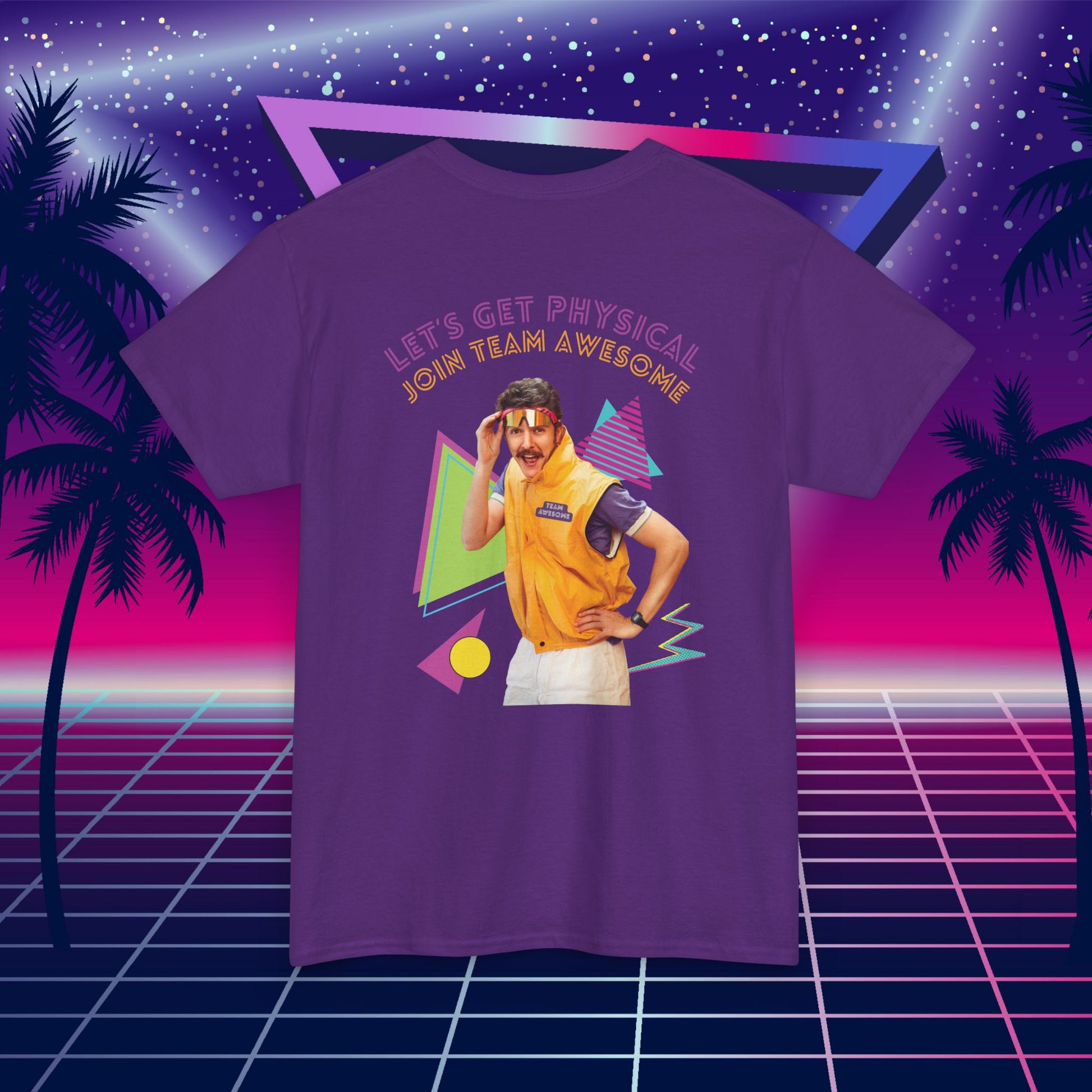 Flashback to the golden age of neon, headbands, and jazzercise glory! This hilarious "Let's Get Physical" tee is the perfect mix of 80s flair and modern comfort. Whether you're hitting a theme party, leading the charge at trivia night, or just living your best retro fantasy, this shirt guarantees laughs, compliments, and undeniable Team Awesome vibes.