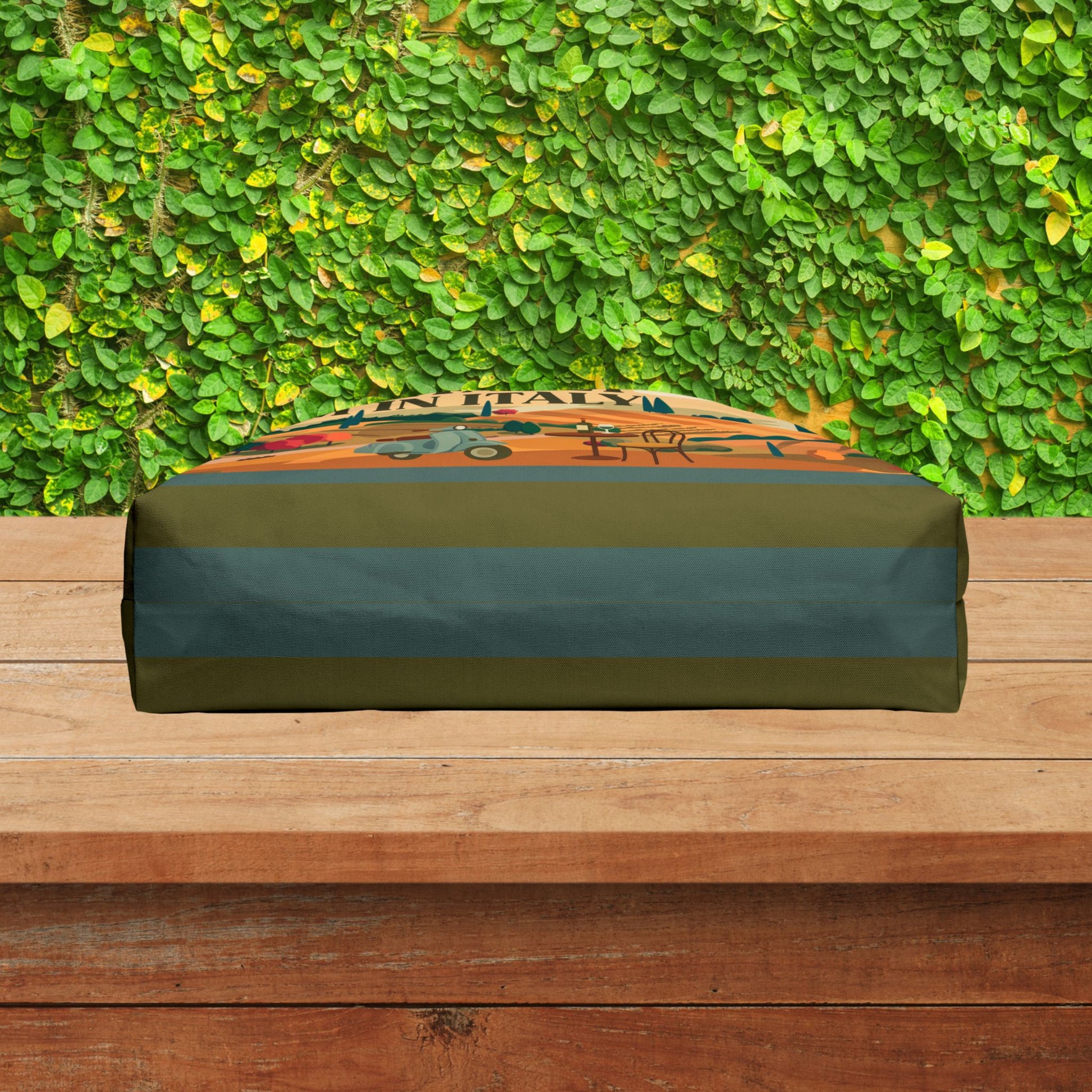 The Mentally I’m in Italy XL Tote captures the charm of the Italian countryside with a stylish, vintage-inspired design featuring a Vespa, rolling hills, cypress trees, and a café scene—all in warm Mediterranean tones.