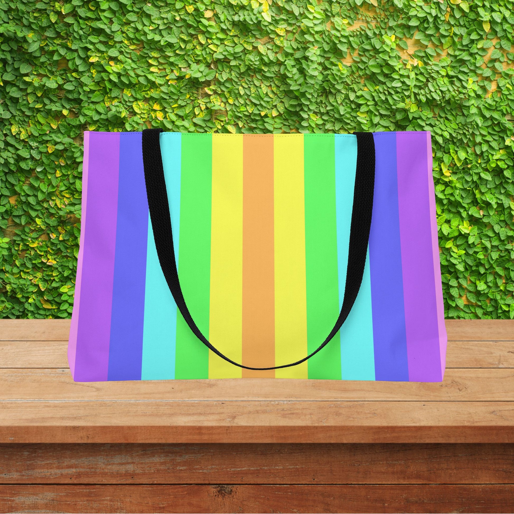 Brighten your day (and your outfit) with this oversized carry-all featuring playful pastel stripes and a bold LOVE graphic with a smiley twist. Whether you're headed to the beach, packing for a weekend getaway, or just need a big, happy tote for your daily haulβthis bag brings the good vibes.
