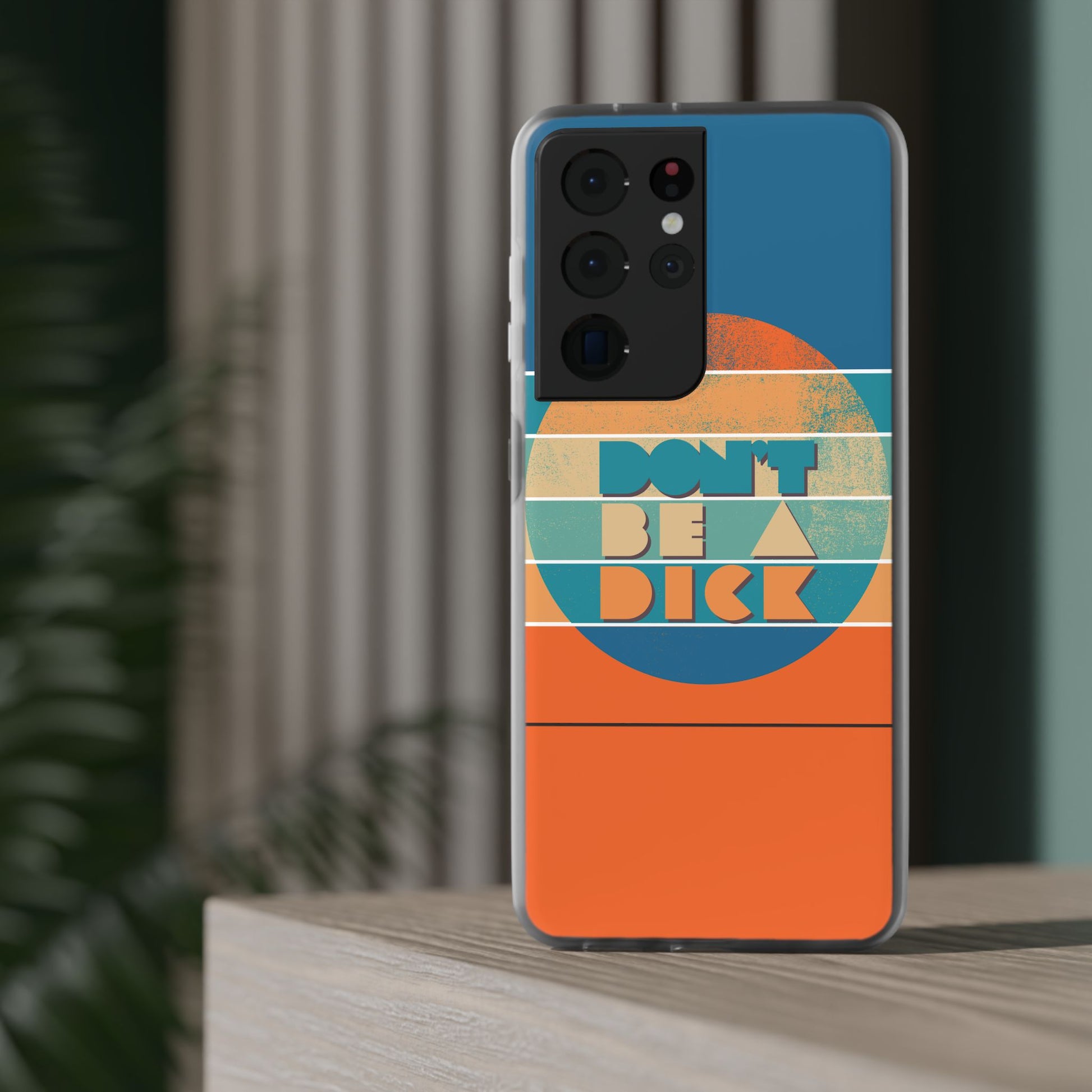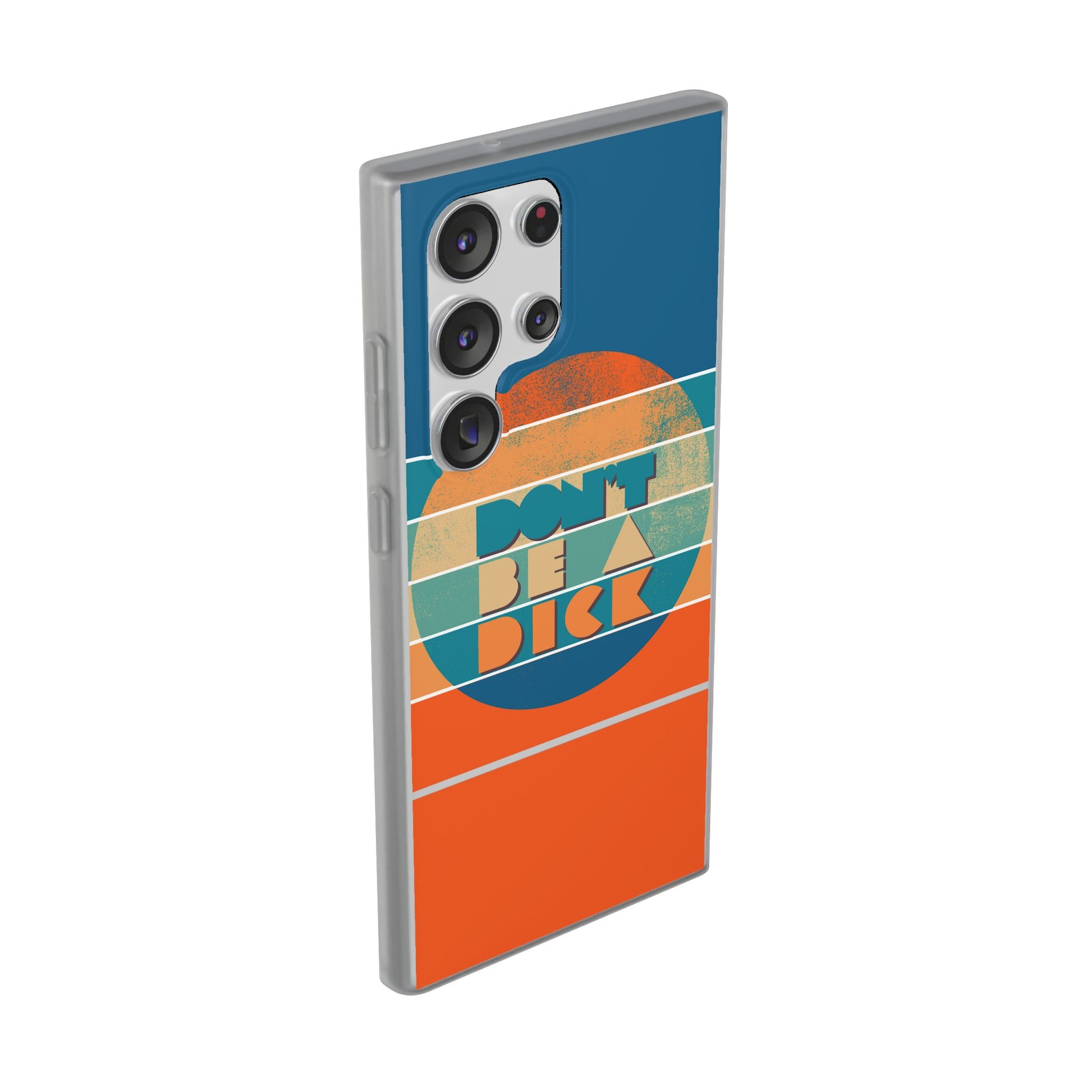 This Retro 70s Flexi Case with the phrase 'don't Be a Dick' gives off a fun and carefree vibe. It is perfect for retro lovers and those who appreciate bold designs. Great for gifting during birthdays, holidays, or as a treat to yourself.