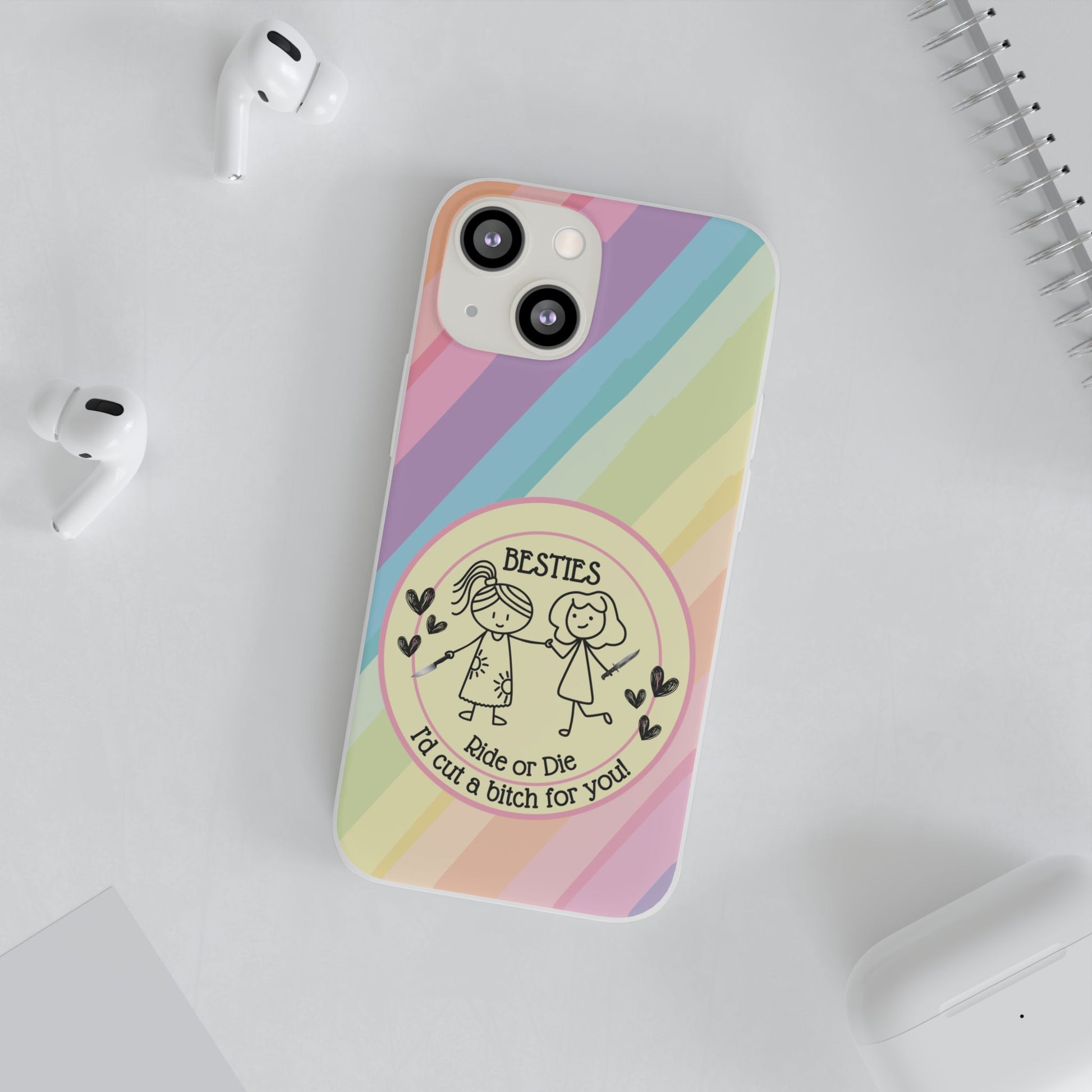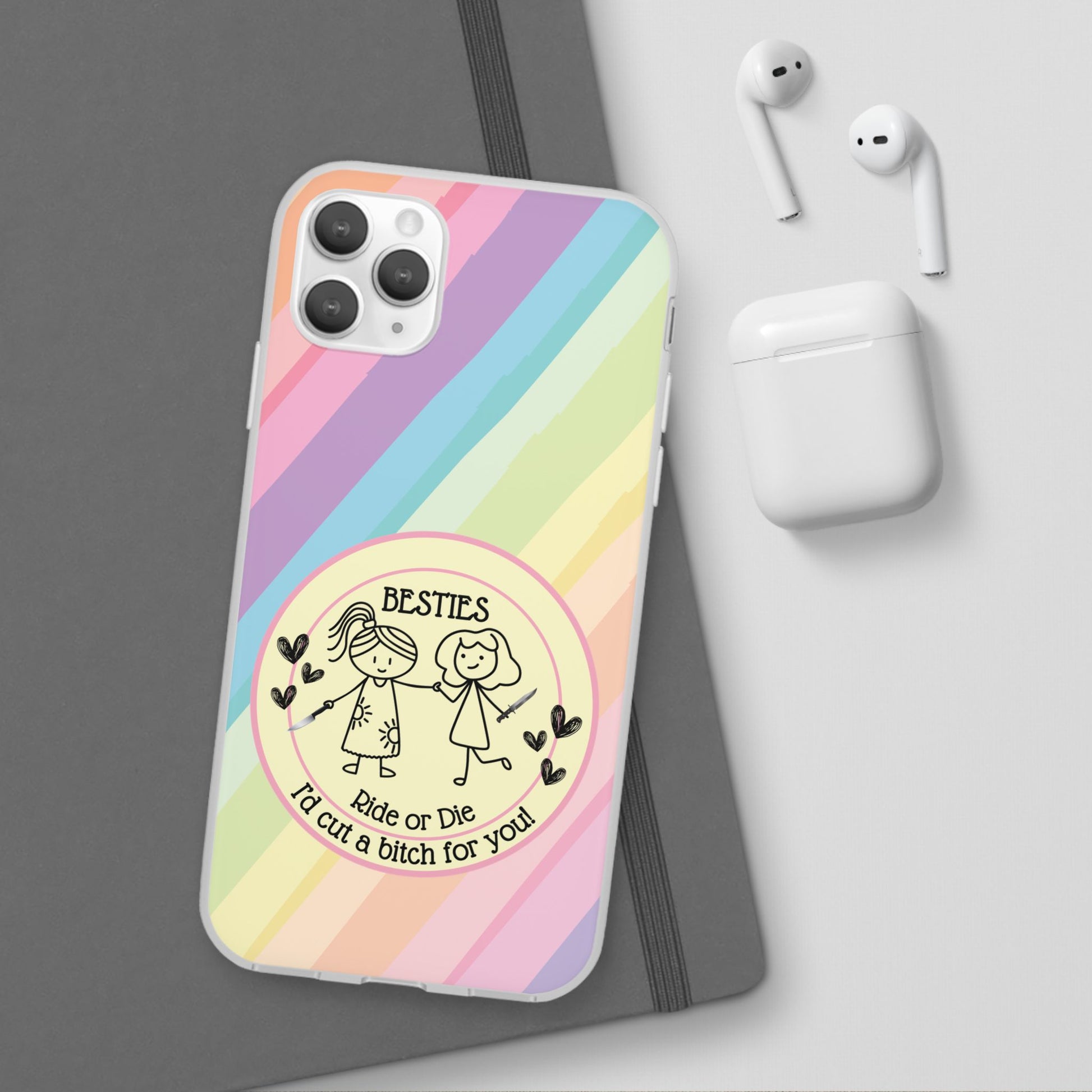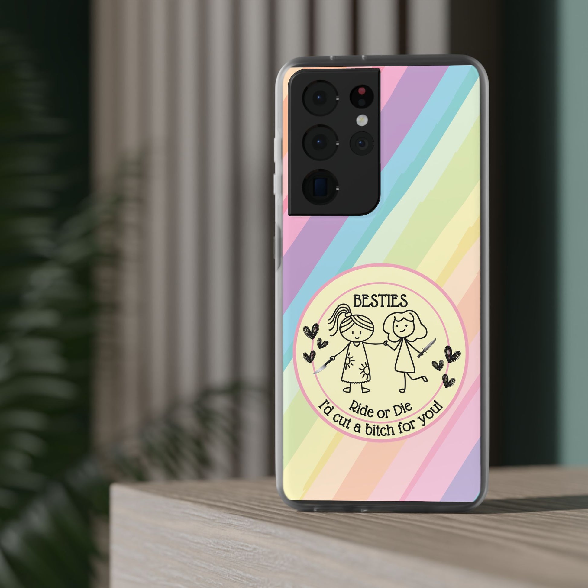 Flexi Cases featuring the phrase Besties| Ride or Die | I'd cut a Bitch for you'. These phone cases give off a fun and edgy vibe, perfect for best friends who are always there for each other. Relevant for friendship day, birthdays, or just to show appreciation for a close friend.