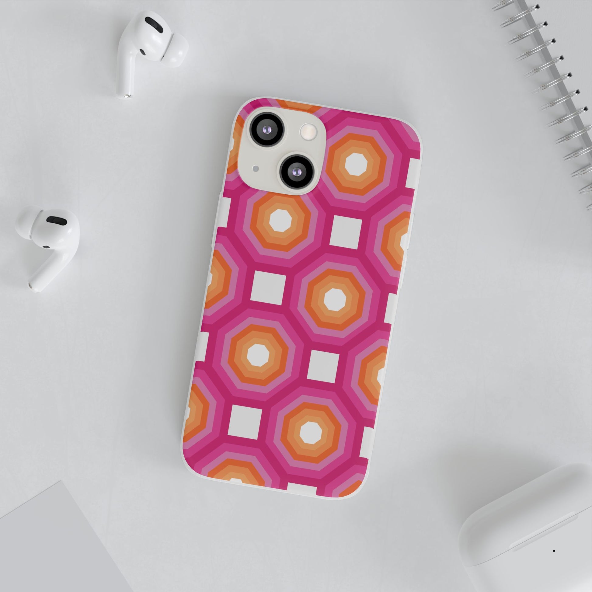 This vibrant Flexi Case brings a splash of color and style to your everyday tech. Designed for those who appreciate both aesthetics and functionality, this phone case offers a unique blend of flexibility and durability. The eye-catching geometric design will brighten your day, making it a perfect companion for your phone. Ideal for students, tech enthusiasts, or anyone looking to add a personal touch to their devices. The slim profile ensures your phone remains lightweight without compromising protection. Perfect for holidays, birthdays, and everyday gifting, this case is a thoughtful choice for anyone wanting to showcase their personality while keeping their device safe. Product features - Flexible design for easy handling and impact absorption - Vibrant, crisp colors that enhance your style - Durable TPU material protects against drops and tears - Slim and lightweight profile for a sleek look - Accurate cutouts allow for seamless connectivity and wireless charging Care instructions - Clean with damp cotton or microfiber cloth. Add a drop of dish soap to the cloth if needed.