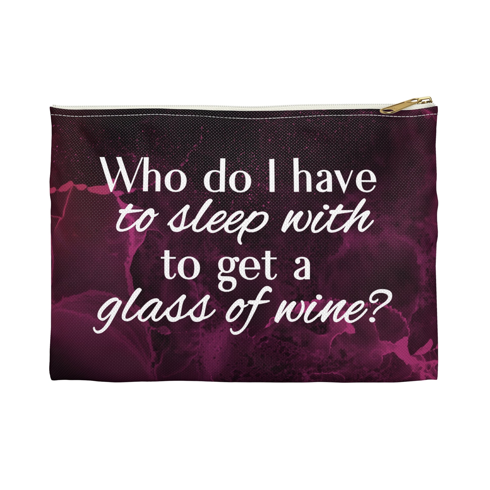 "Who Do I Have to Sleep With to Get a Glass of Wine?" - Flat Pouch Accessory | Bold, Funny & Functional