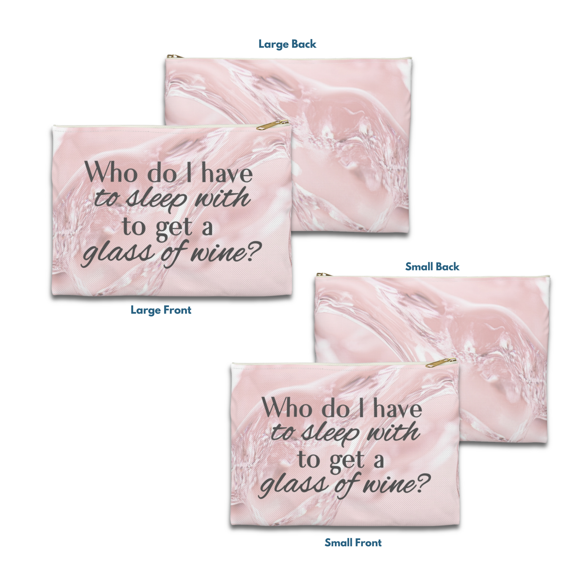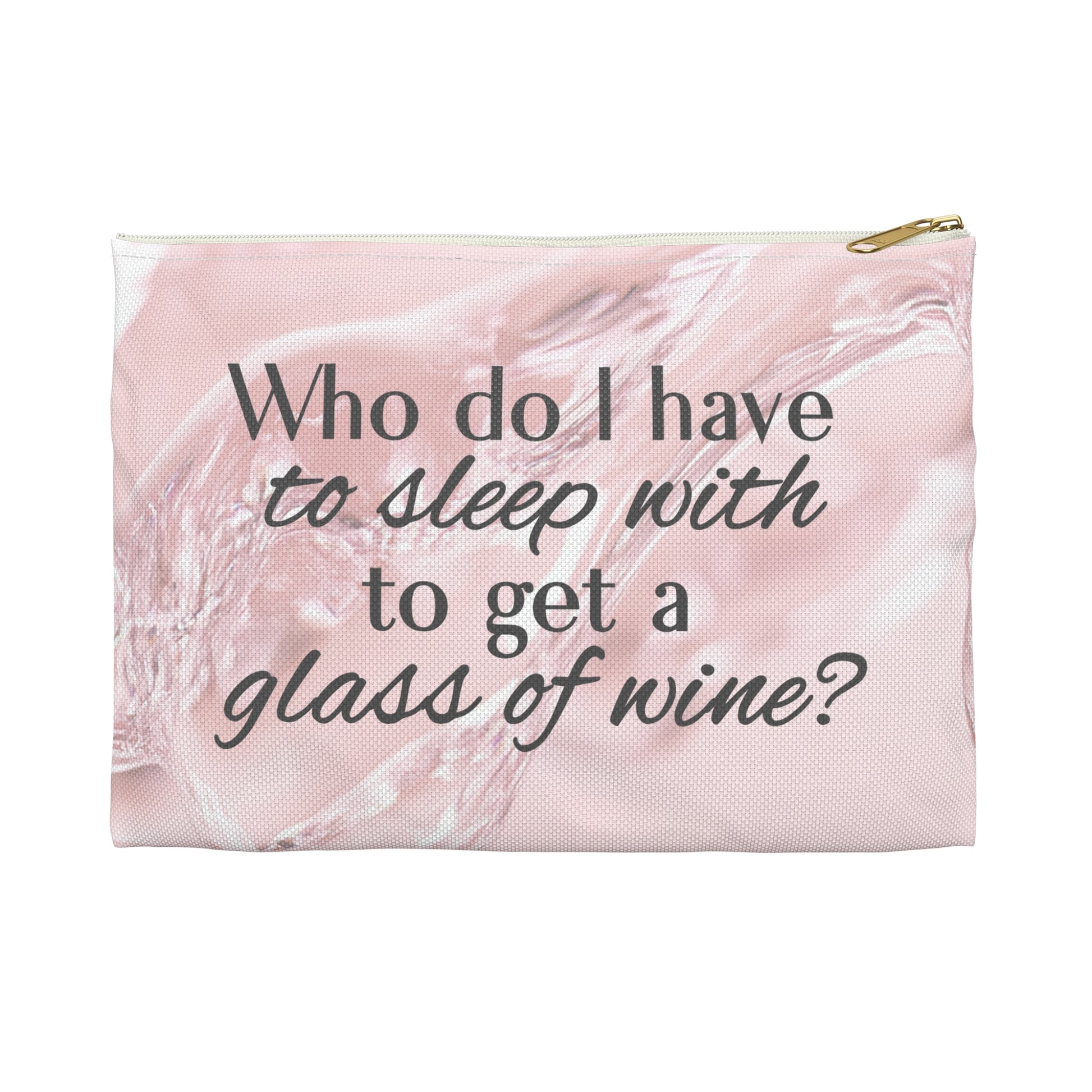 "Who Do I Have to Sleep With to Get a Glass of Wine?" | Rose Edition - Flat Pouch Accessory | Bold, Funny & Functional