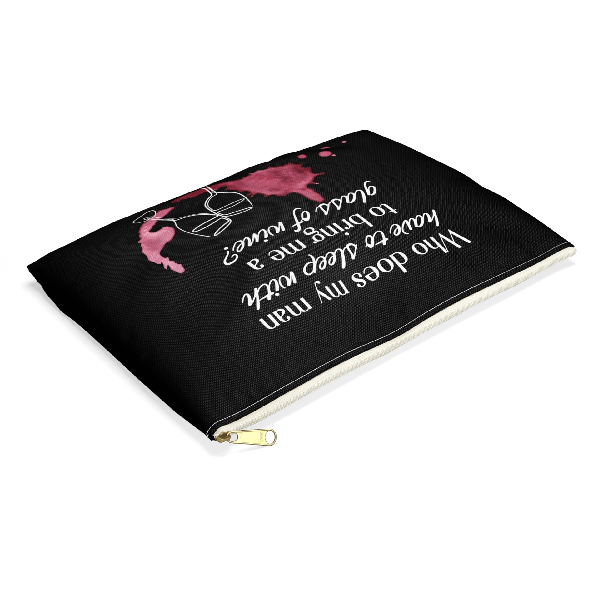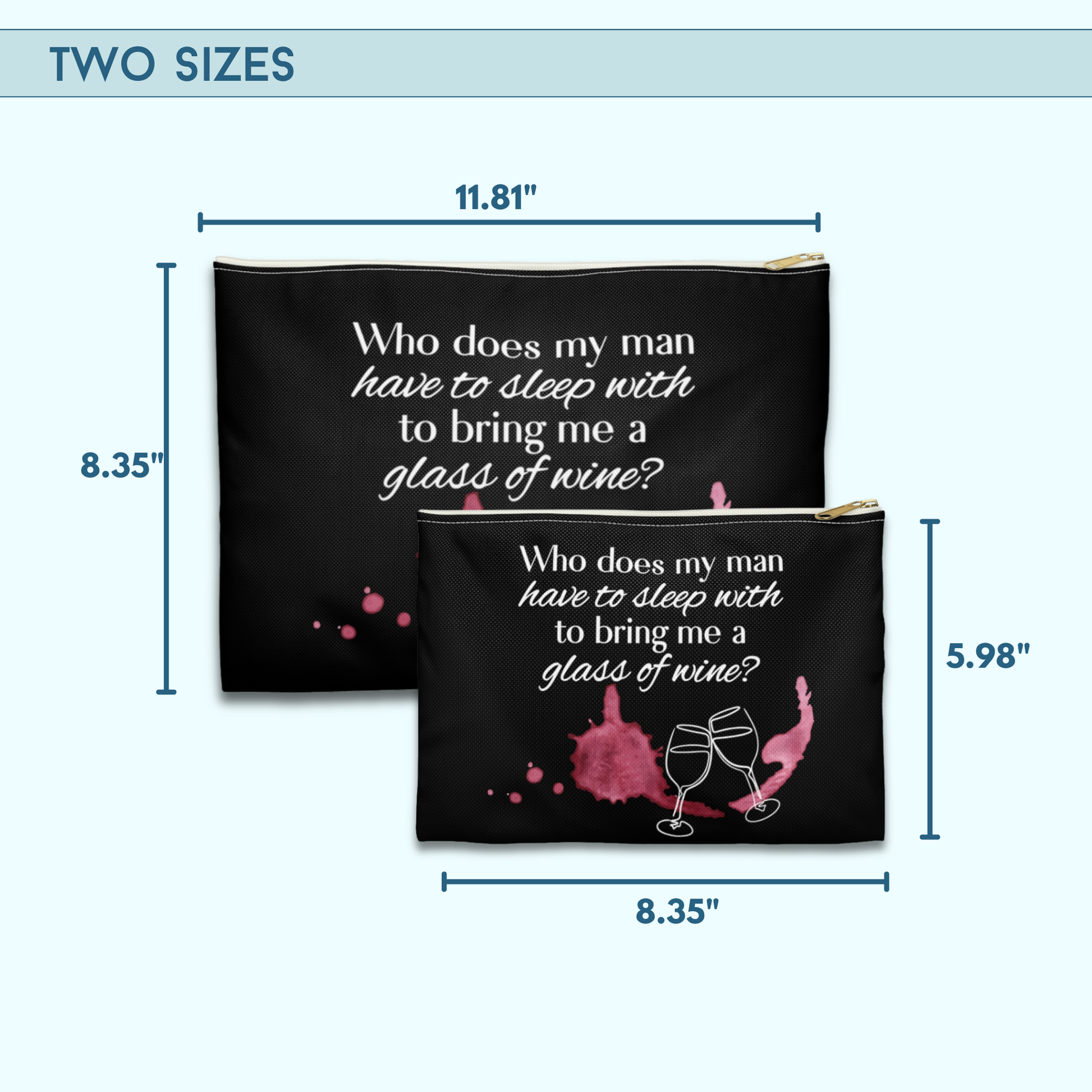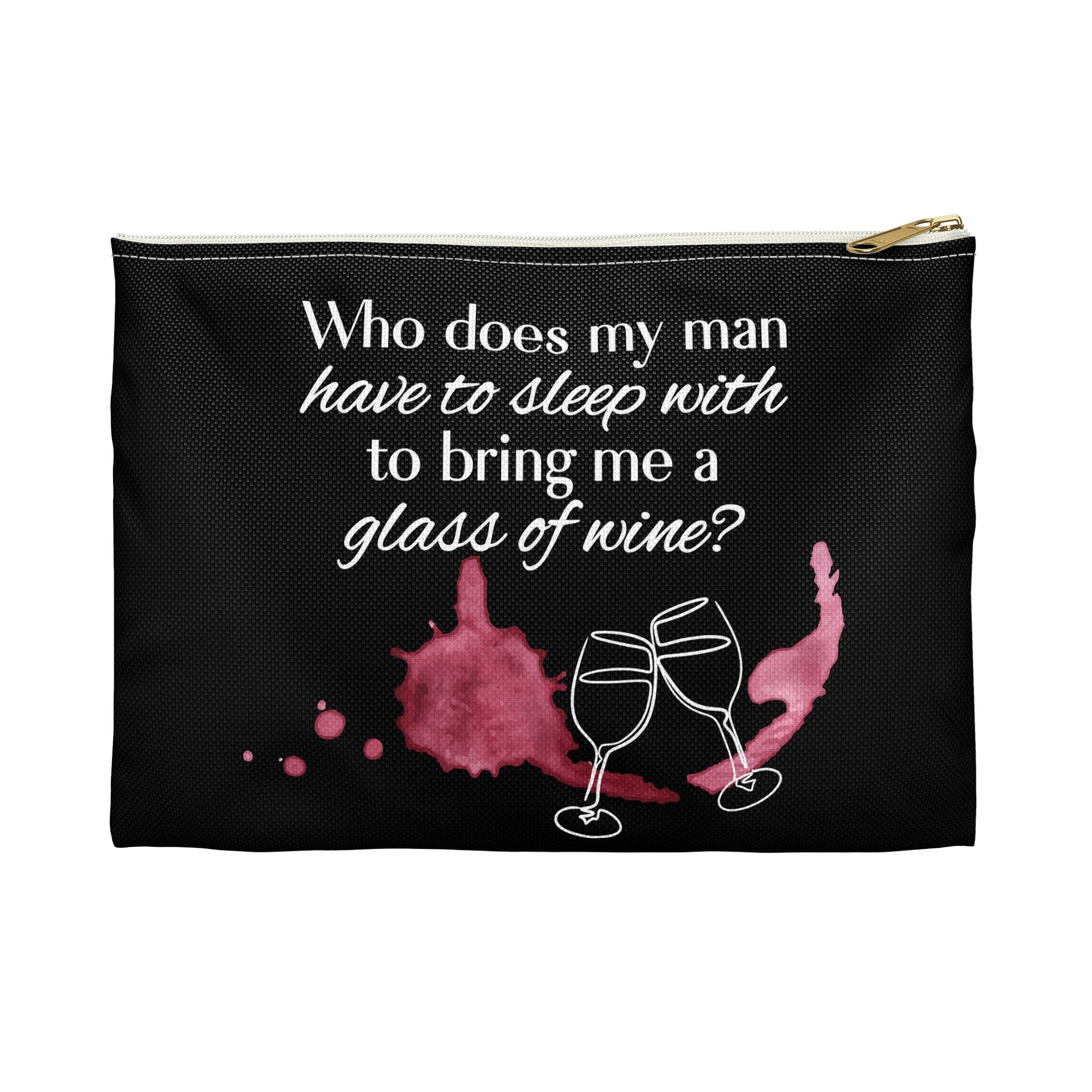 Who Does my Man Have to Sleep With to get a Glass of Wine? - Flat Pouch Accessory | Bold, Funny & Functional